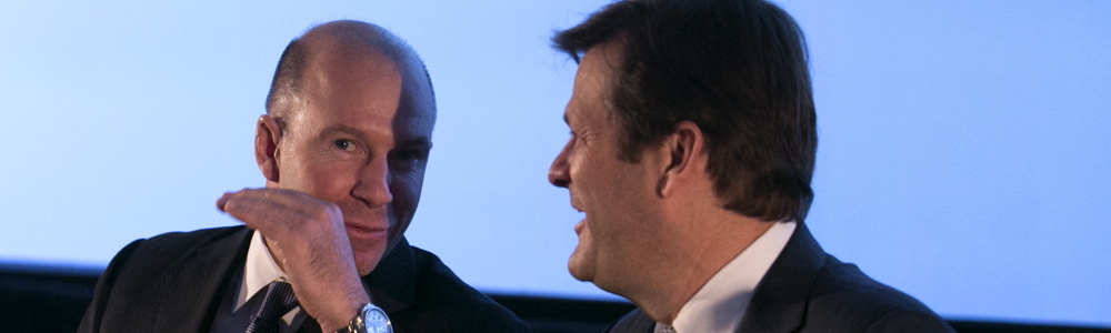 [De gauche à droite] Le président et chef de la direction de Bombardier, Alain Bellemare en compagnie du président exécutif du C.A., Pierre Beaudoin. Photo : Reuters/Christinne Muschi